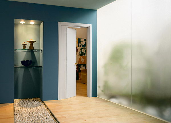 Модель ECLISSE Novanta позволяет половине полотна въехать в нишу в стене, в то время как вторая его половина открывается как распашная створка. И вуаля, проблема решена !