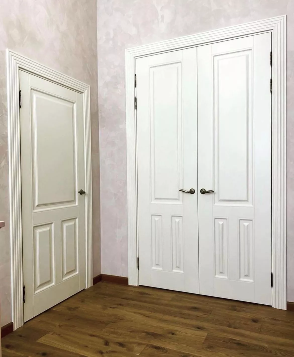 • Эмаль: Каркасно-щитовые полотна с классическими или минималистичными рисунками, багетными элементами. Окрашивание по палитрам RAL или NCS, в матовом или глянцевом варианте.