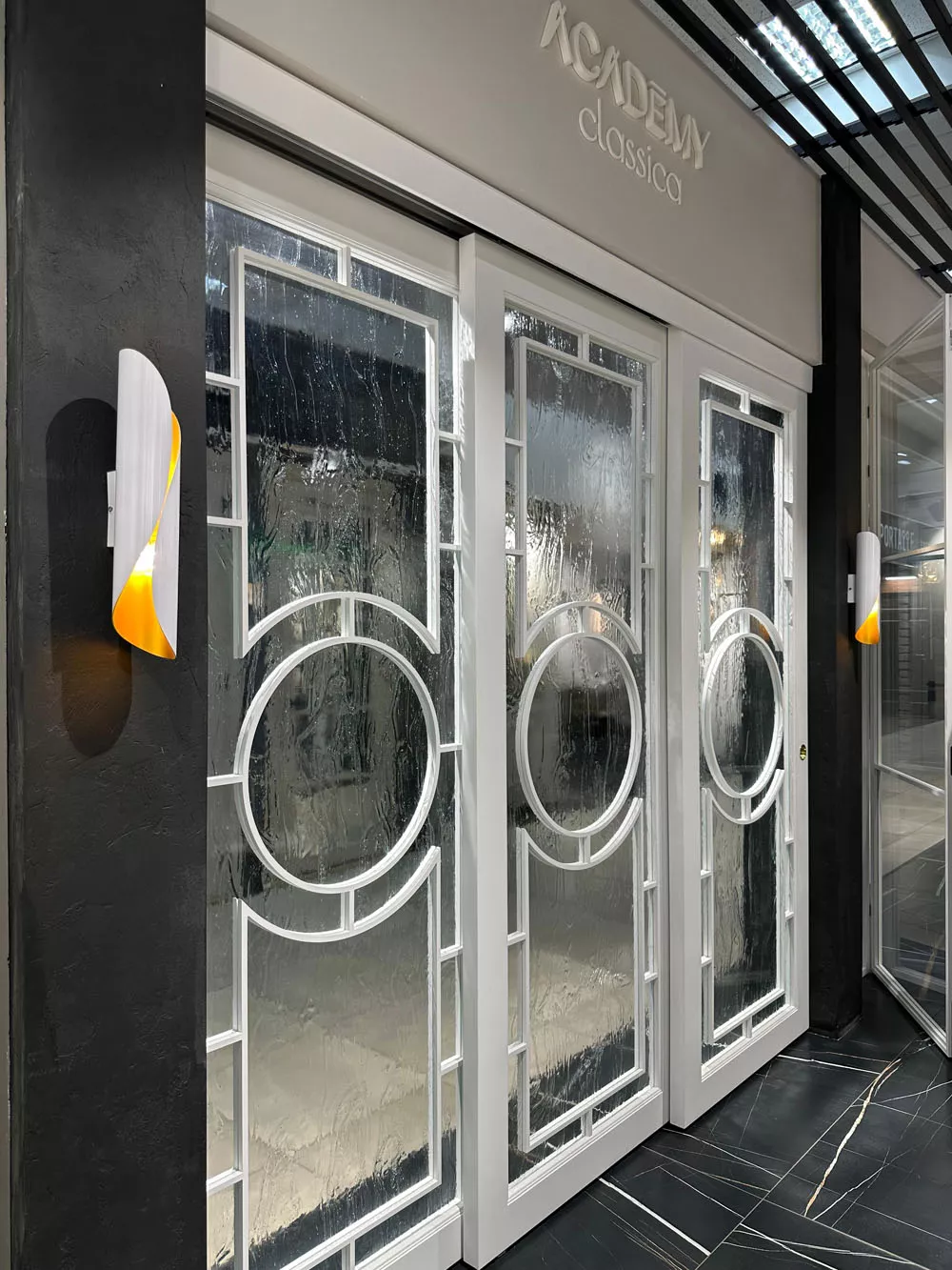 • Прочность и безопасность: Использование закаленного стекла или стекла триплекс делает двери устойчивыми к ударам и безопасными в эксплуатации.